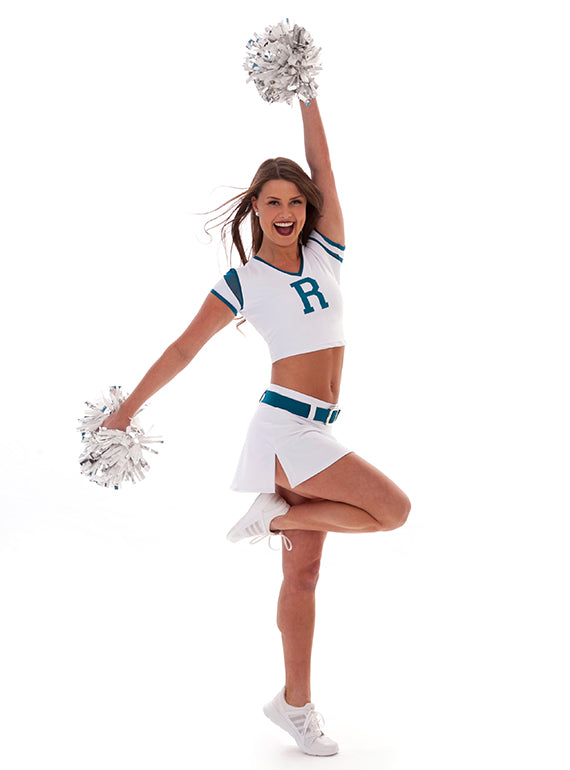 - Cheer crop top with a jersey look