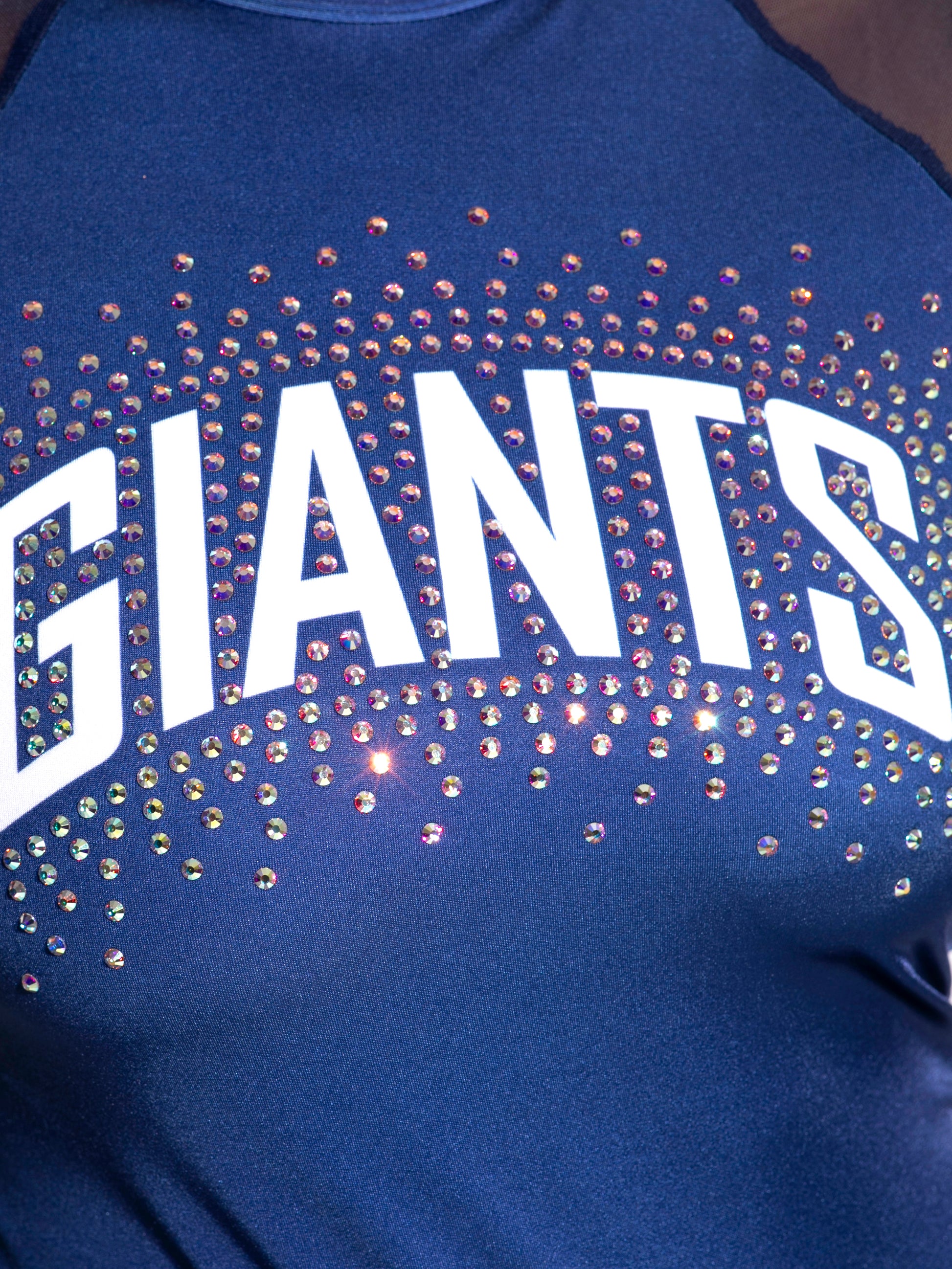 - Fully sublimated gameday and pom dress with mesh sleeves and sporty stripe print