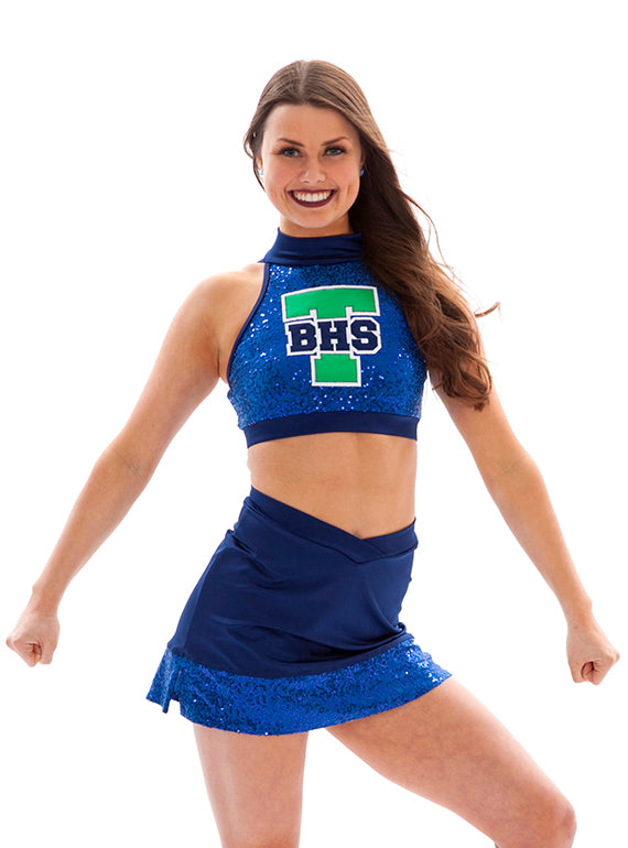 - Classic cheer crop top made in our sparkly Zsa Zsa fabric with a mock collar