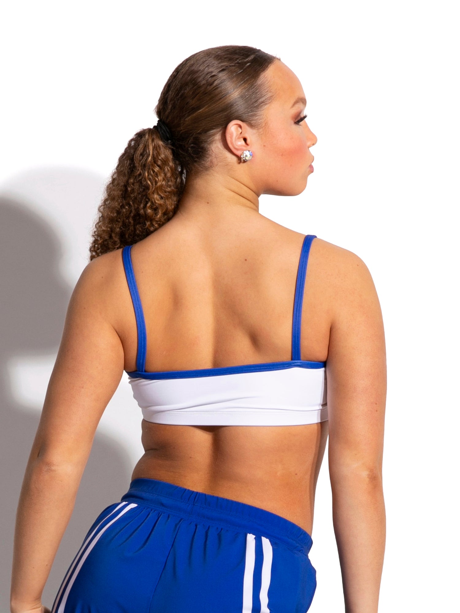 - Sporty cami style bra top with lettering on bust and add on rhinestones