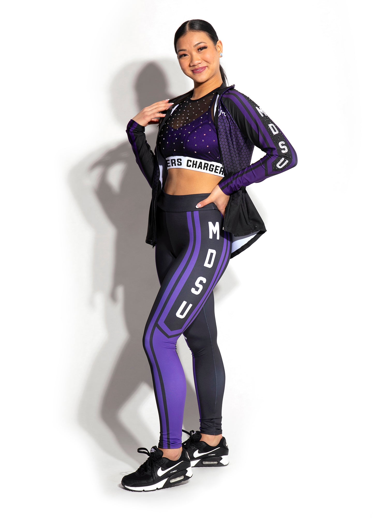 - Fully sublimated high waist leggings with futuristic print and custom lettering