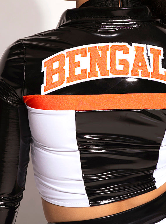 - Edgy zip-up jacket with dynamic blocking, shaped hem and add on lettering