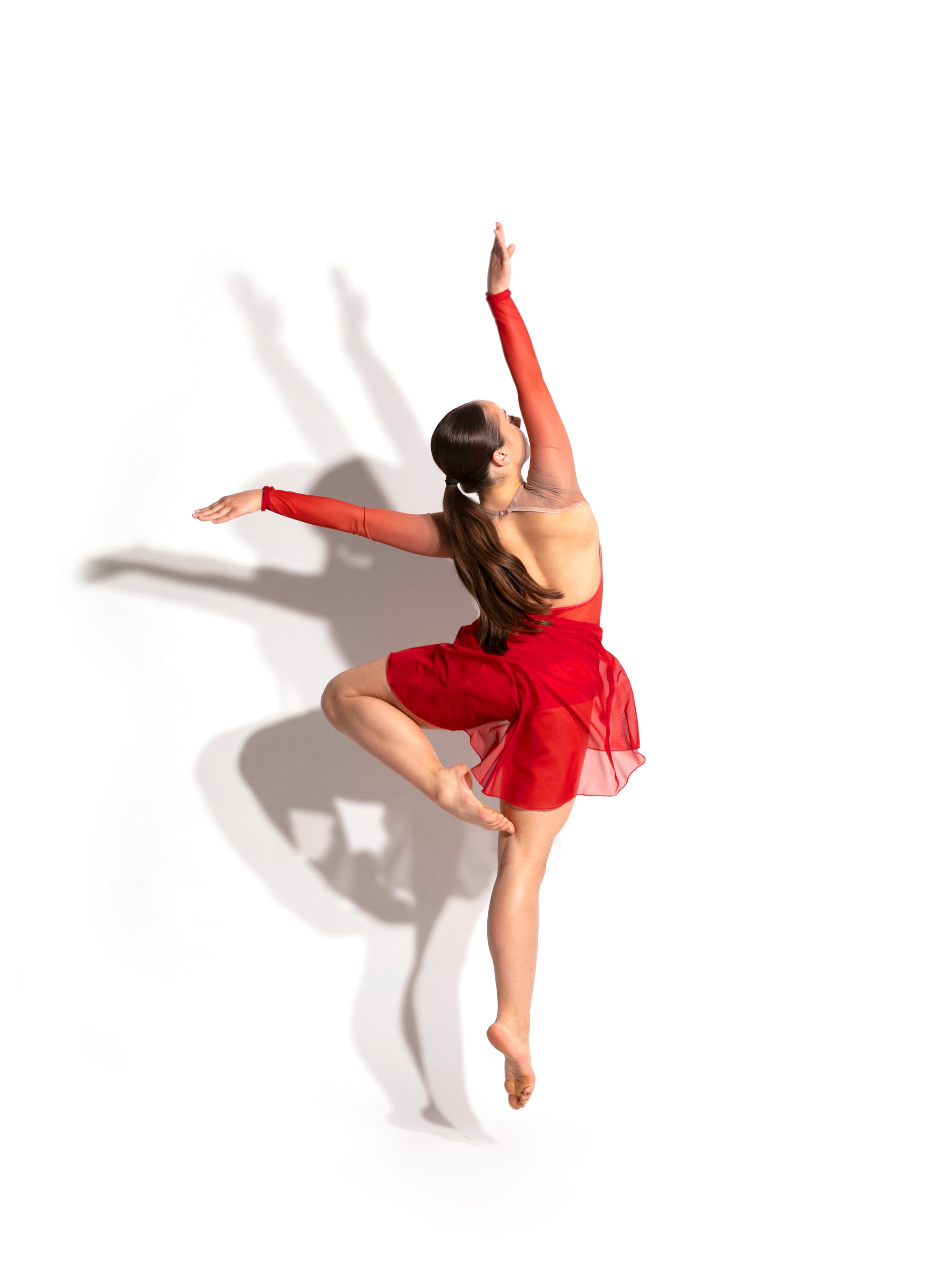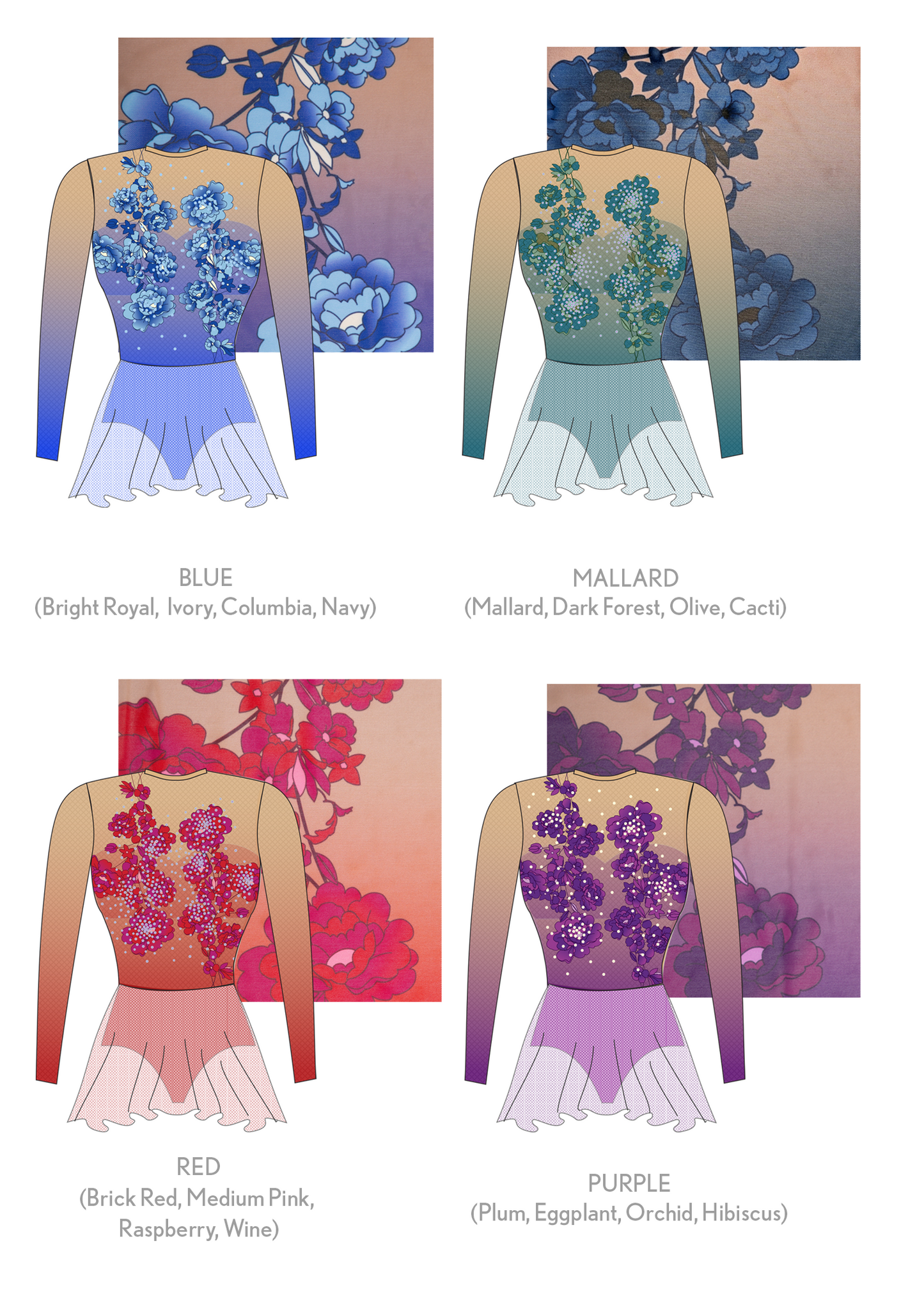 - Modern elegant sublimated floral print dress with a flowing mesh skirt and add on rhinestones