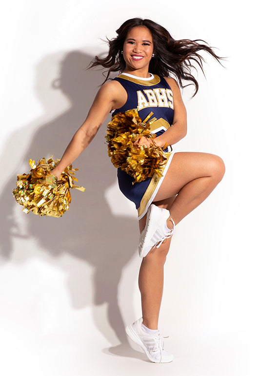 - Cute sleeveless gameday dress inspired by classic pom dresses
