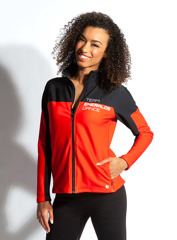 - Fully sublimated jacket with a color block design, perfect for dance or cheer team warm-ups