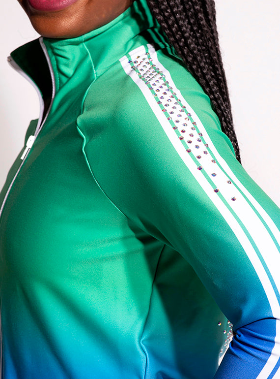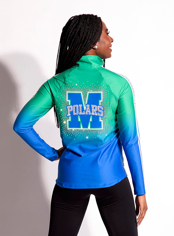 - Our standard warm-up jacket with a raglan sleeve and fun stripe detail