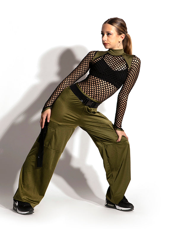 - Edgy dance leotard with big-hole cabaret mesh