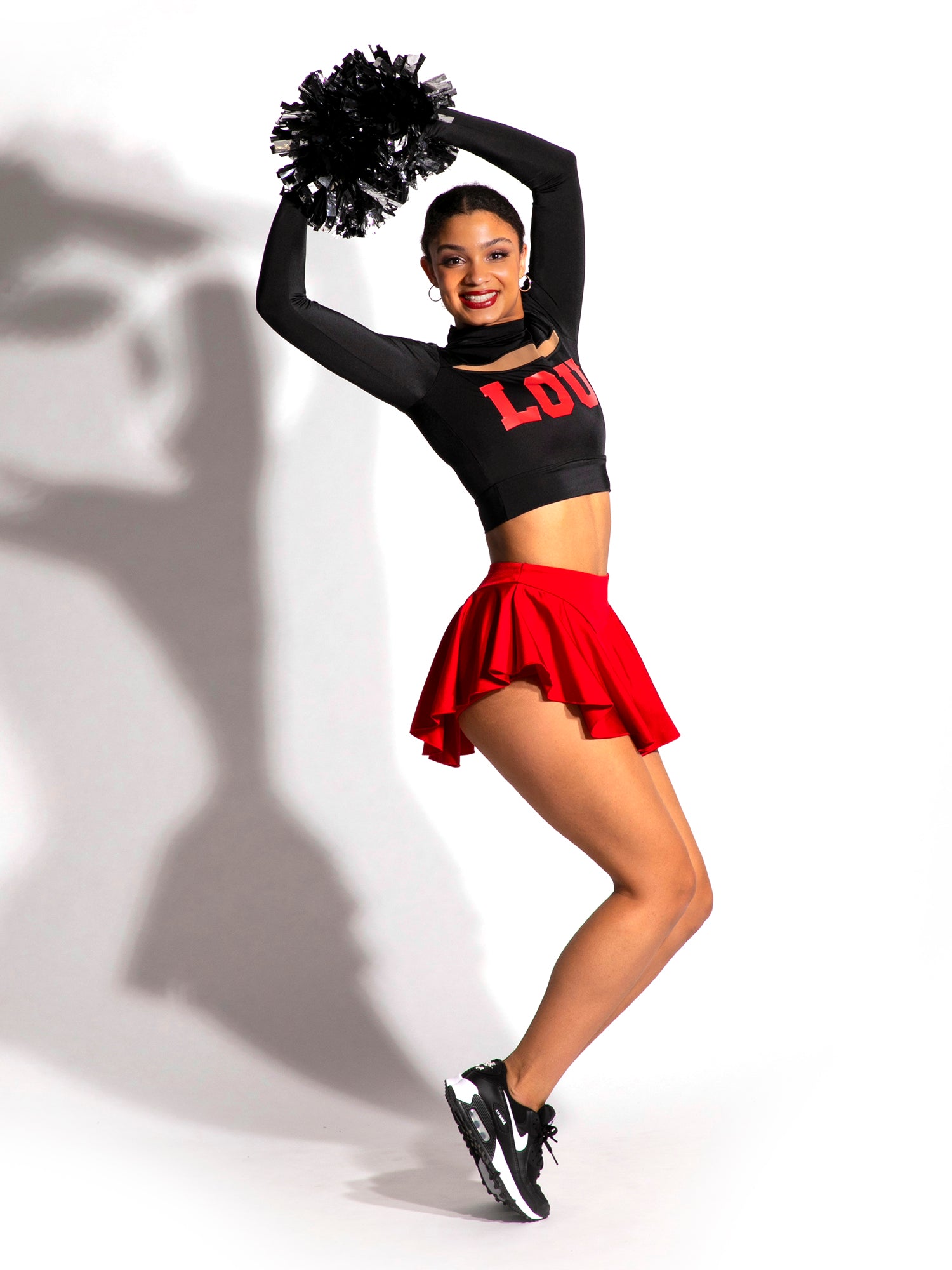 - Edgy long sleeved gameday crop with open back, inspired by the University of Louisville Ladybirds 2021 Hip Hop crop
