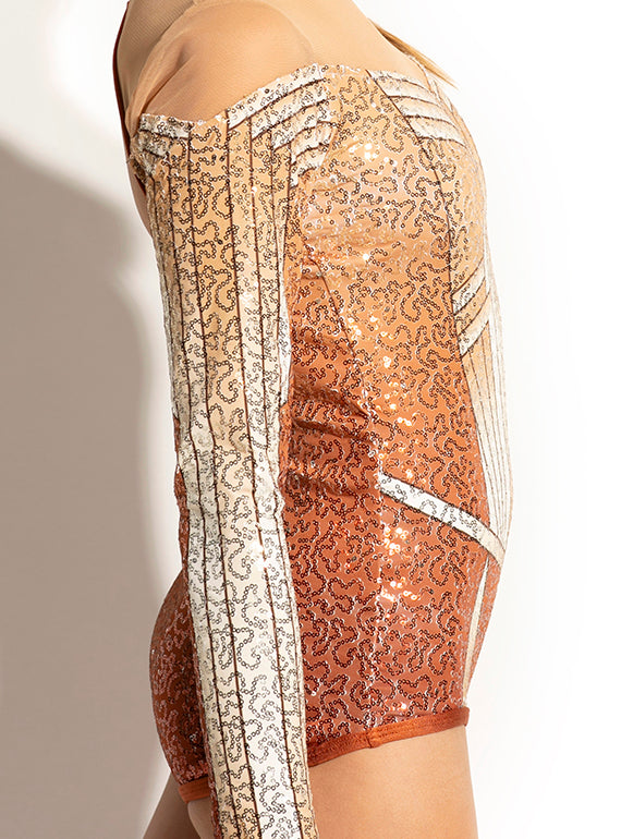 - Geometric sublimated gaga long sleeve leotard with mesh blocking