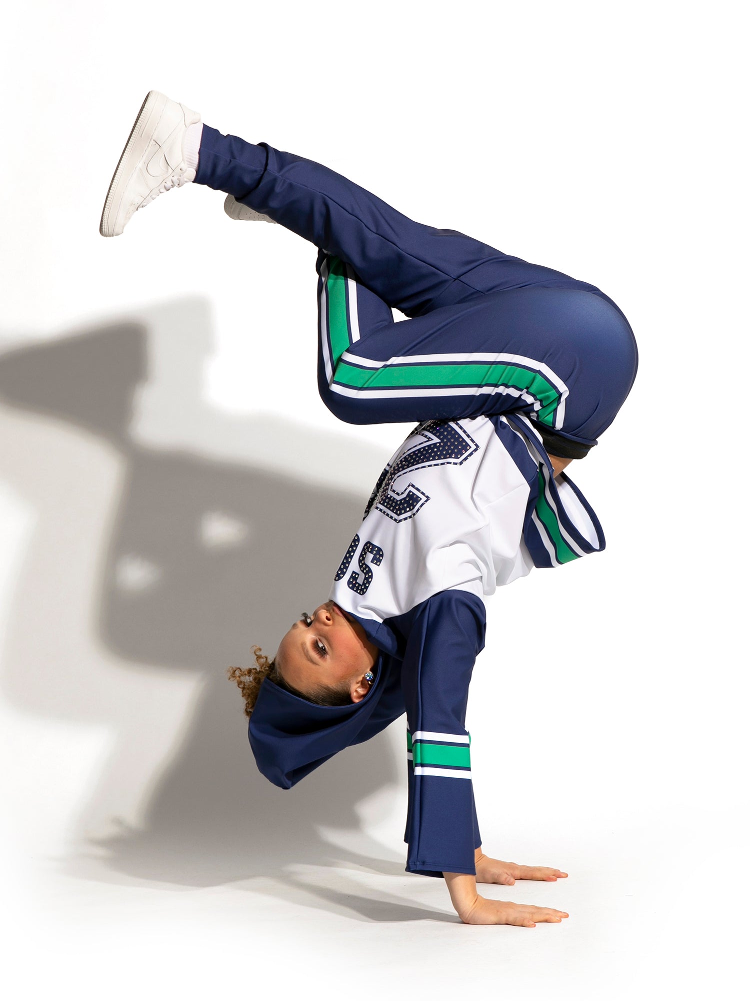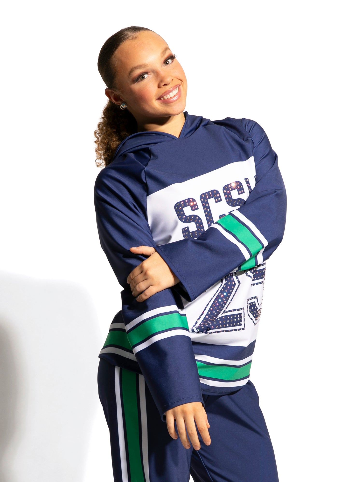 - Versatile hooded jersey with sublimated lettering and numbering and add on rhinestones