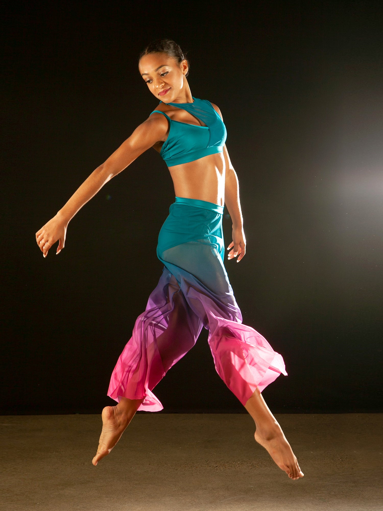 - Stunning asymmetrical dance crop top with a mesh overlay