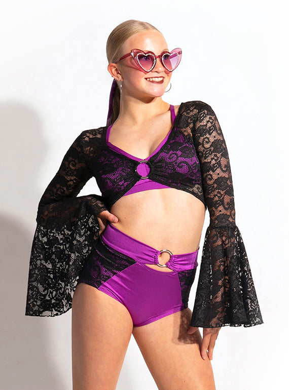 - Funky brief with lace blocking and gathered waistband into an O-ring
