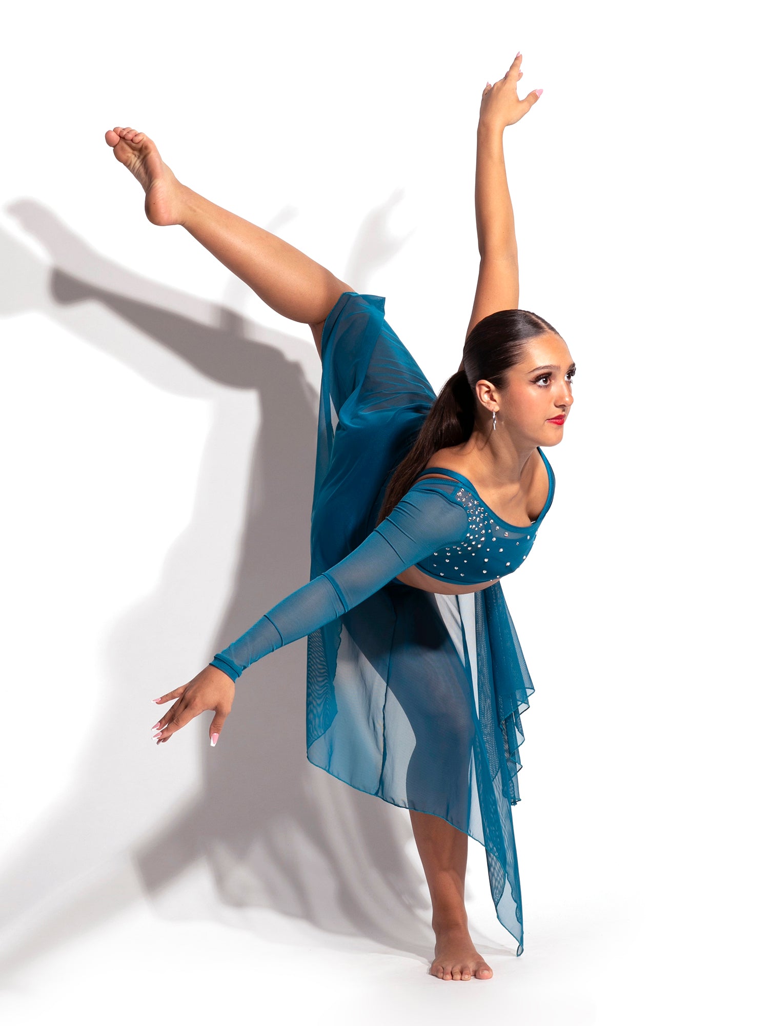 - Whimsical asymmetrical mesh skirt with an attached brief