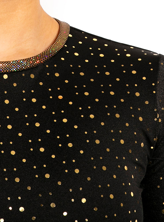 - Edgy long sleeves leotard with corset-inspired bodice, with add on spangles.