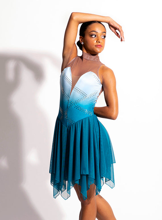 - Ombre bodice skate dress with spangles and handkerchief skirt