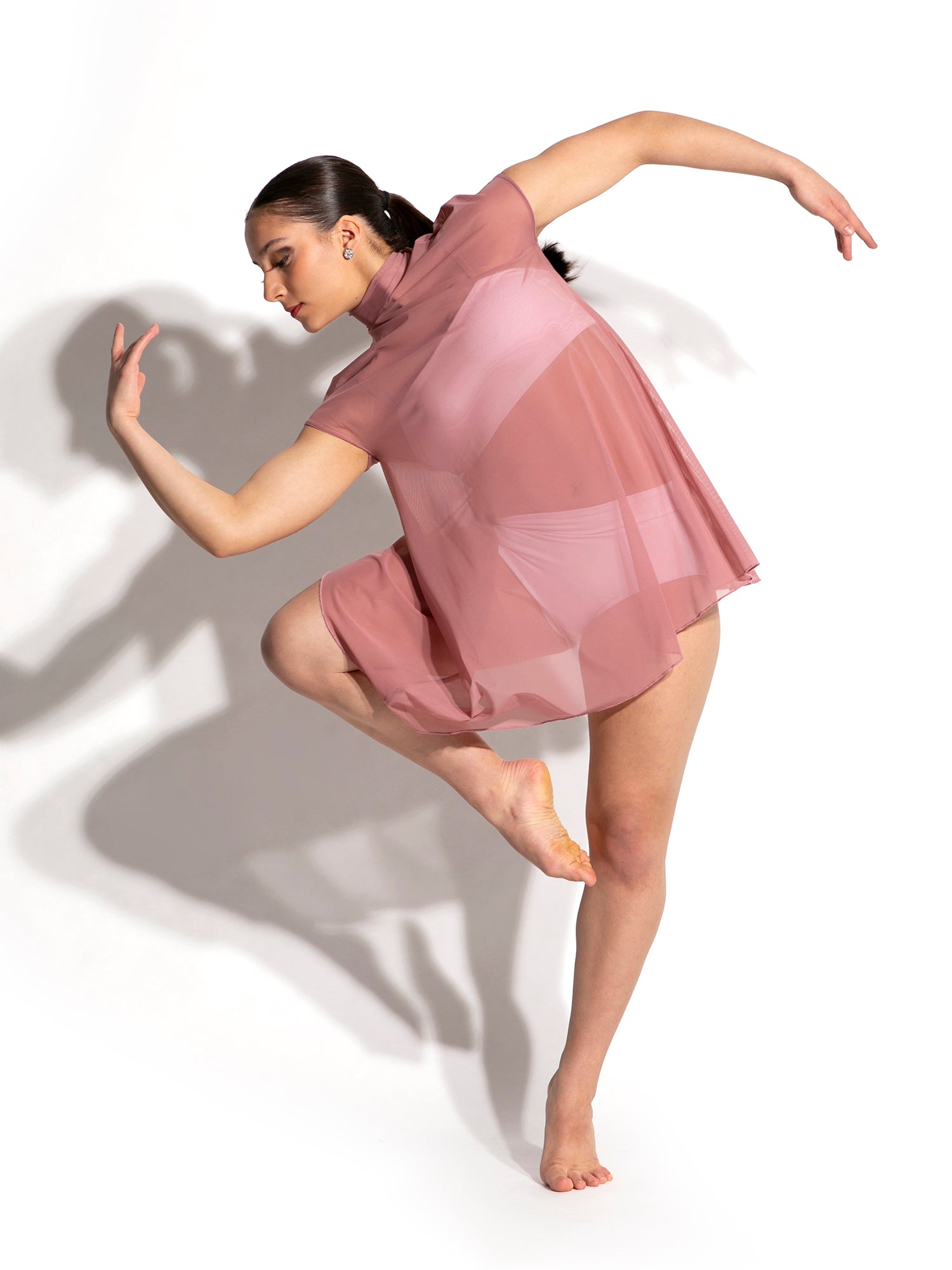 The Elin Mesh Overlay by The Line Up is a perfectly simple silhouette. This mock neck mesh overlay is the perfect addition to any leotard or separates set. Made to elevate your contemporary, lyrical or jazz dance routine.