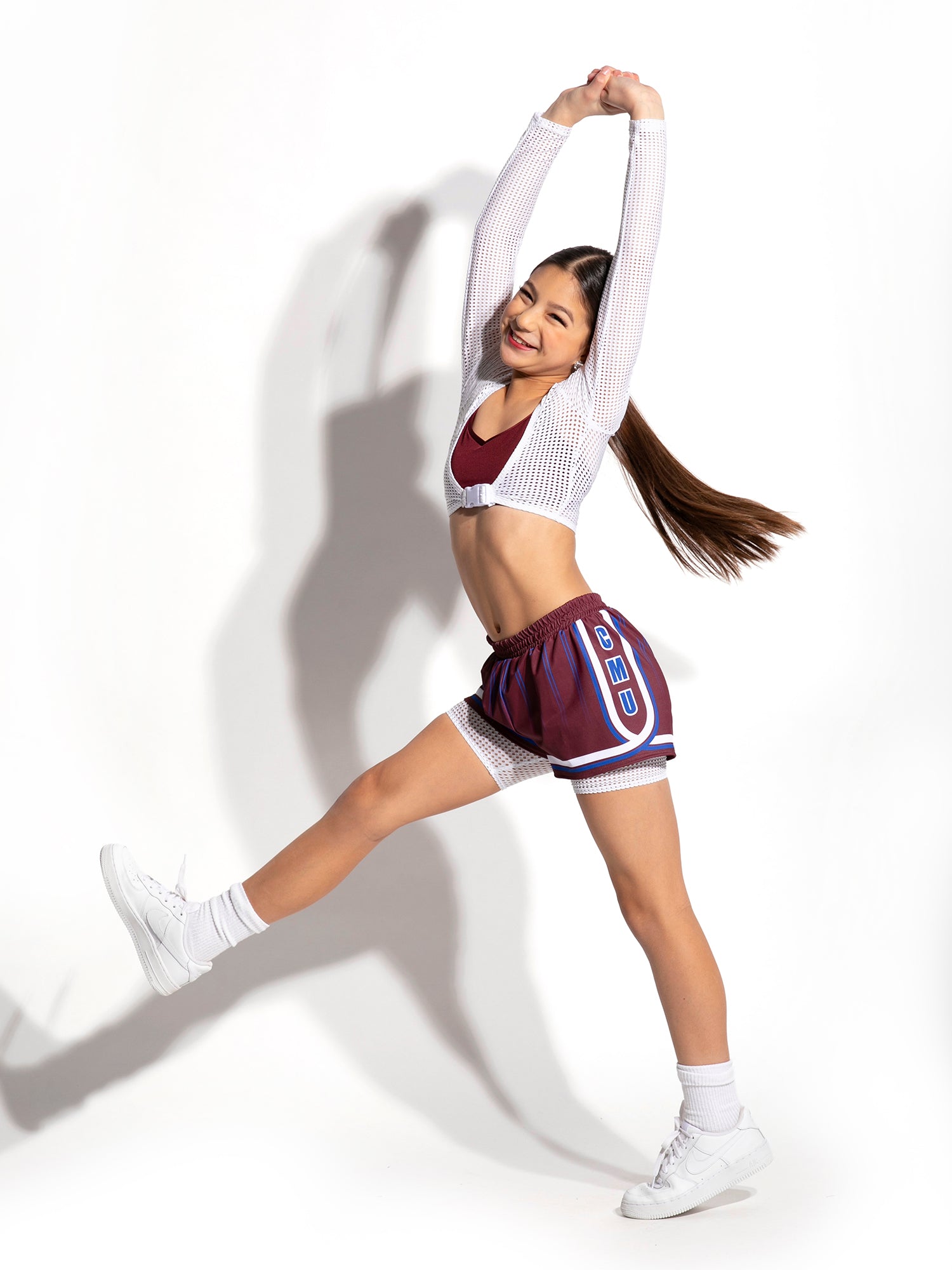 - High waist loose sublimated short with pop mesh biker short attached underneath