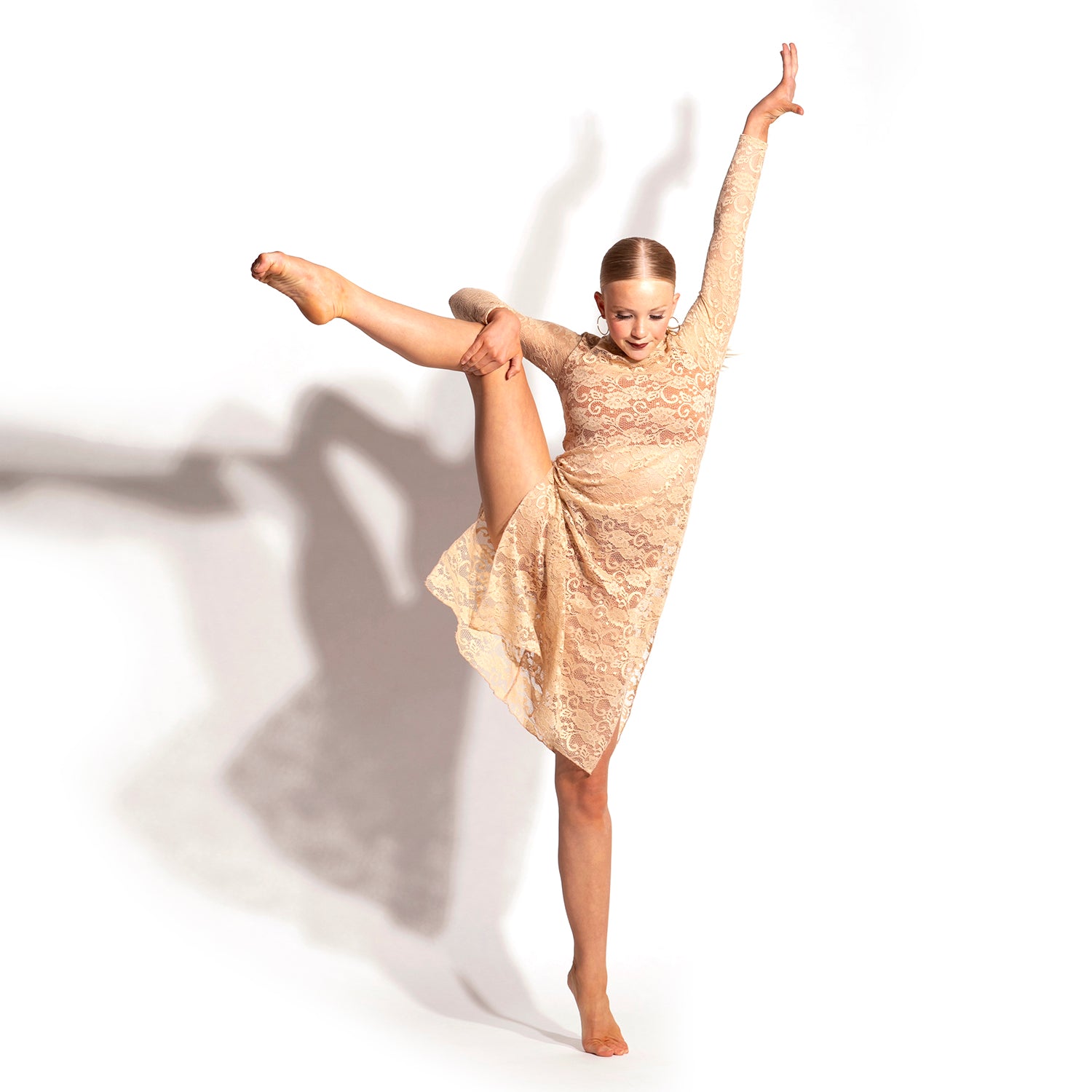 About Lace: Durable with a delicate look and full stretch. For high-friction choreography, consider alternatives to lace. Please note that lace patterns may change due to availability.