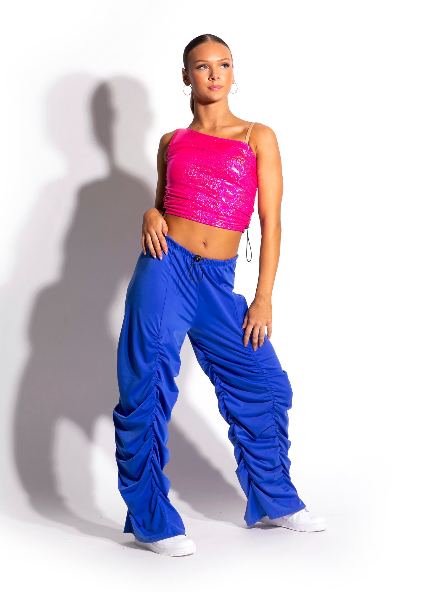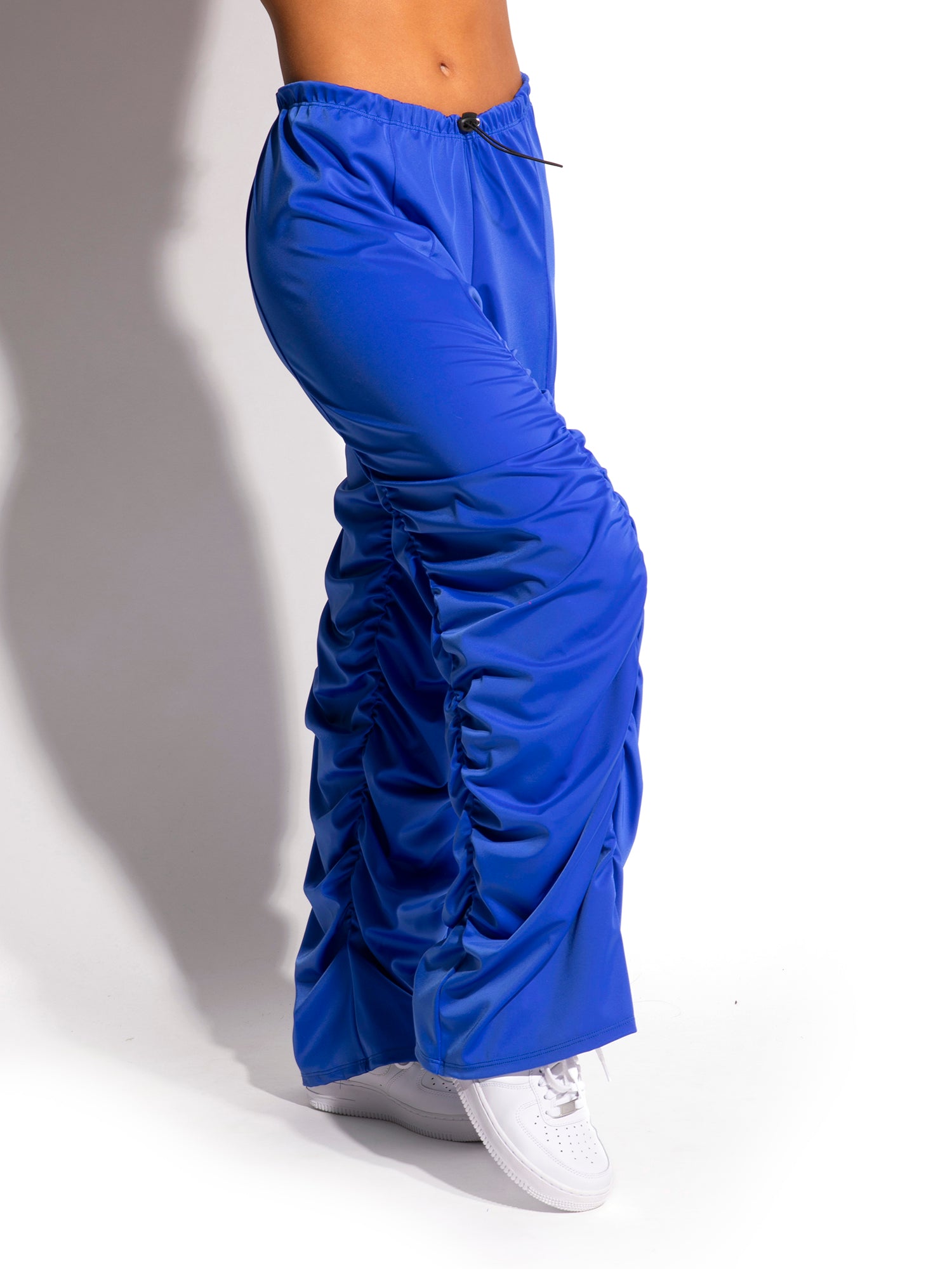 - Gathered baggy hip hop pants with a wide leg silhouette and drawcord waist