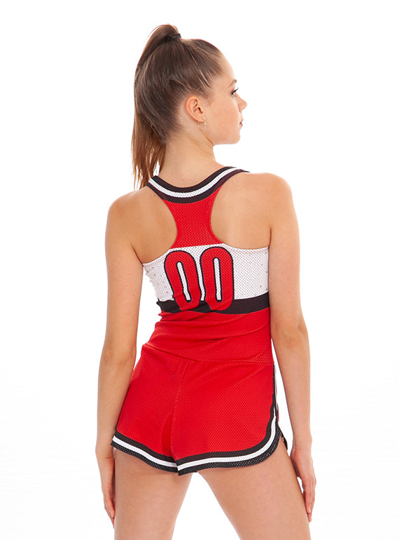 - Basketball inspired, sporty biketard made from sublimated Athletic Mesh