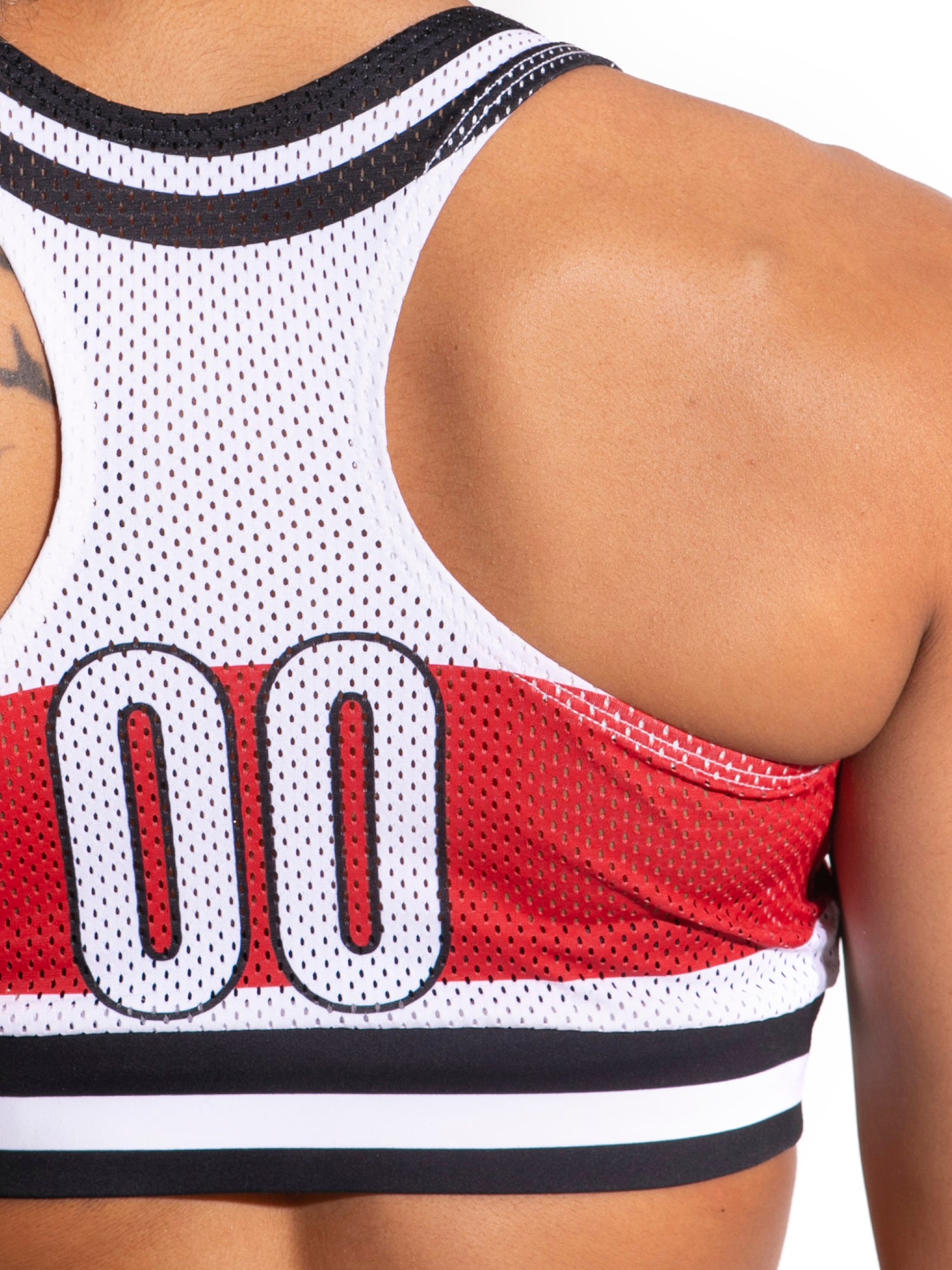 - Sporty dance racerback crop top made in our sublimated Athletic Mesh