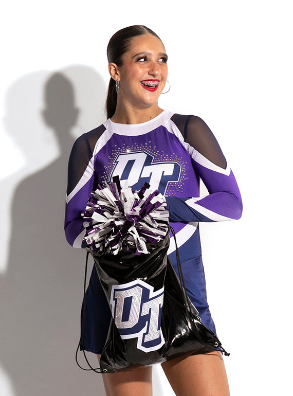 - A drawstring cinch bag made with our liquid fabric with a custom logo
