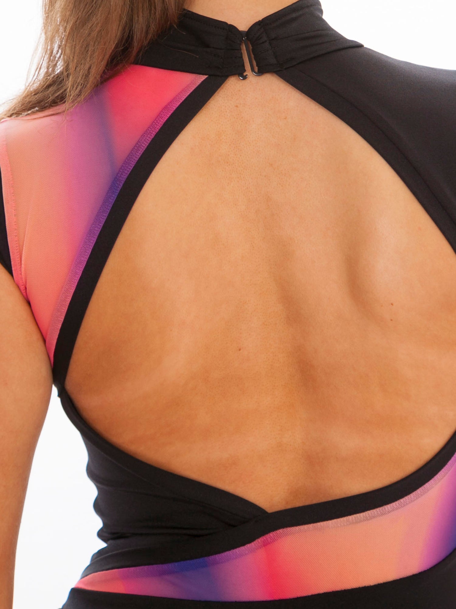 - Stunning skate dress with sublimated mesh blocking and an open back