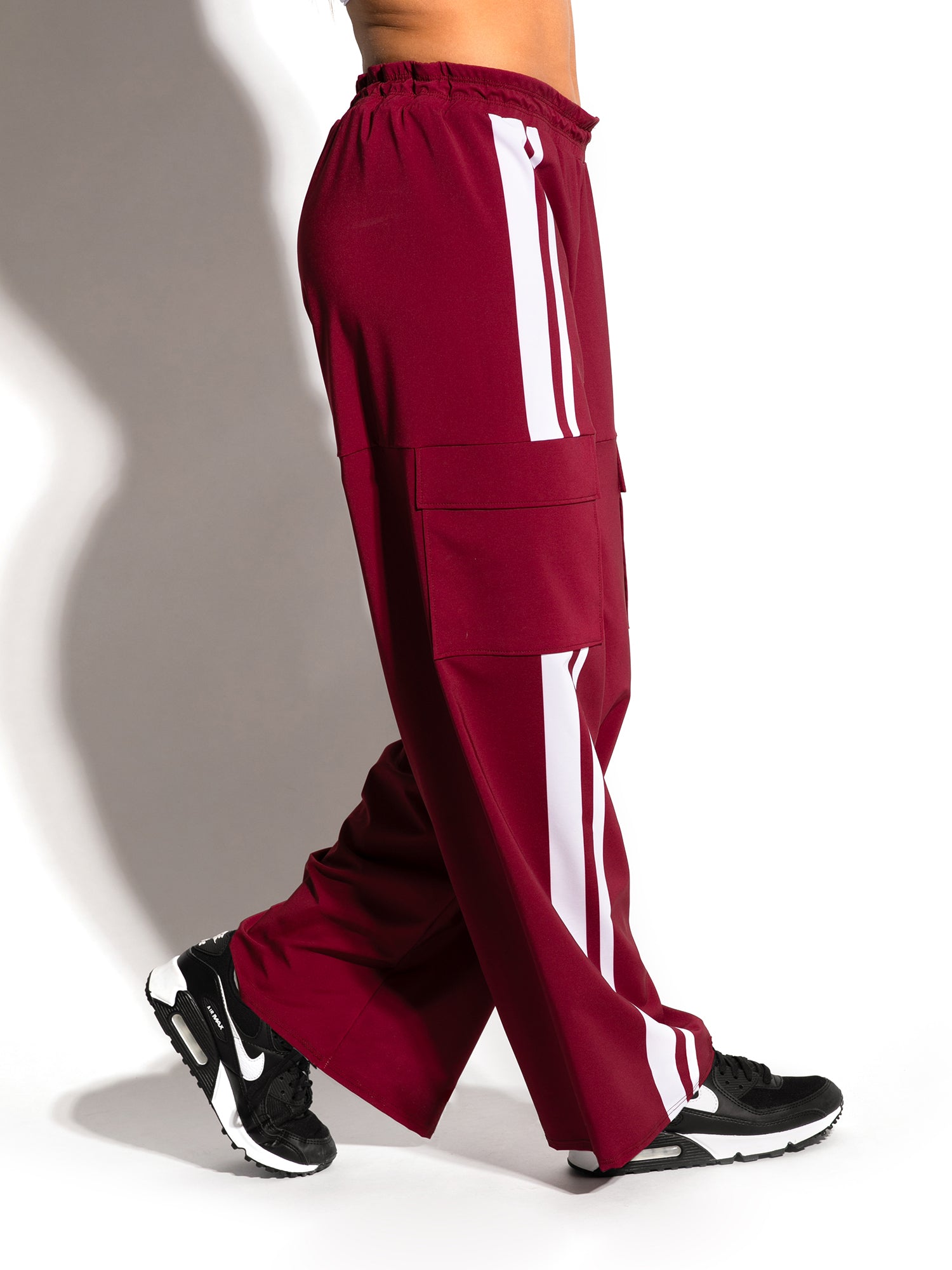 - Fully sublimated cargo style hip hop pant with drawstring elastic waistband, pockets, and stripe pattern