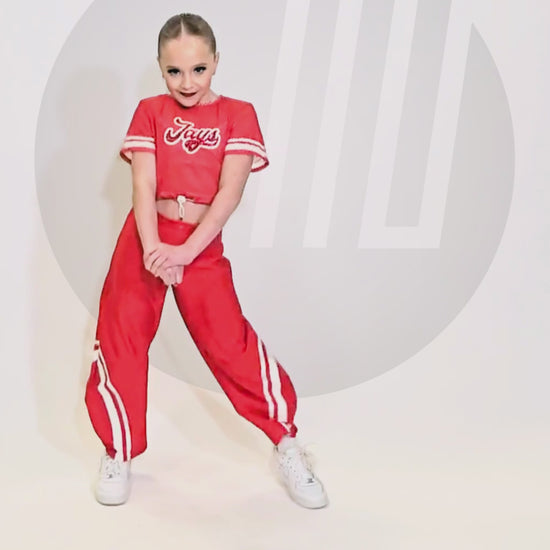 The Margot Crop Overlay by The Line Up is a sporty dance performance top inspired by classic jersey style. Made with sublimated pop mesh and finished with a drawstring hem, it delivers a bold, athletic look perfect for hip hop routines, game day performances, and team warmups.