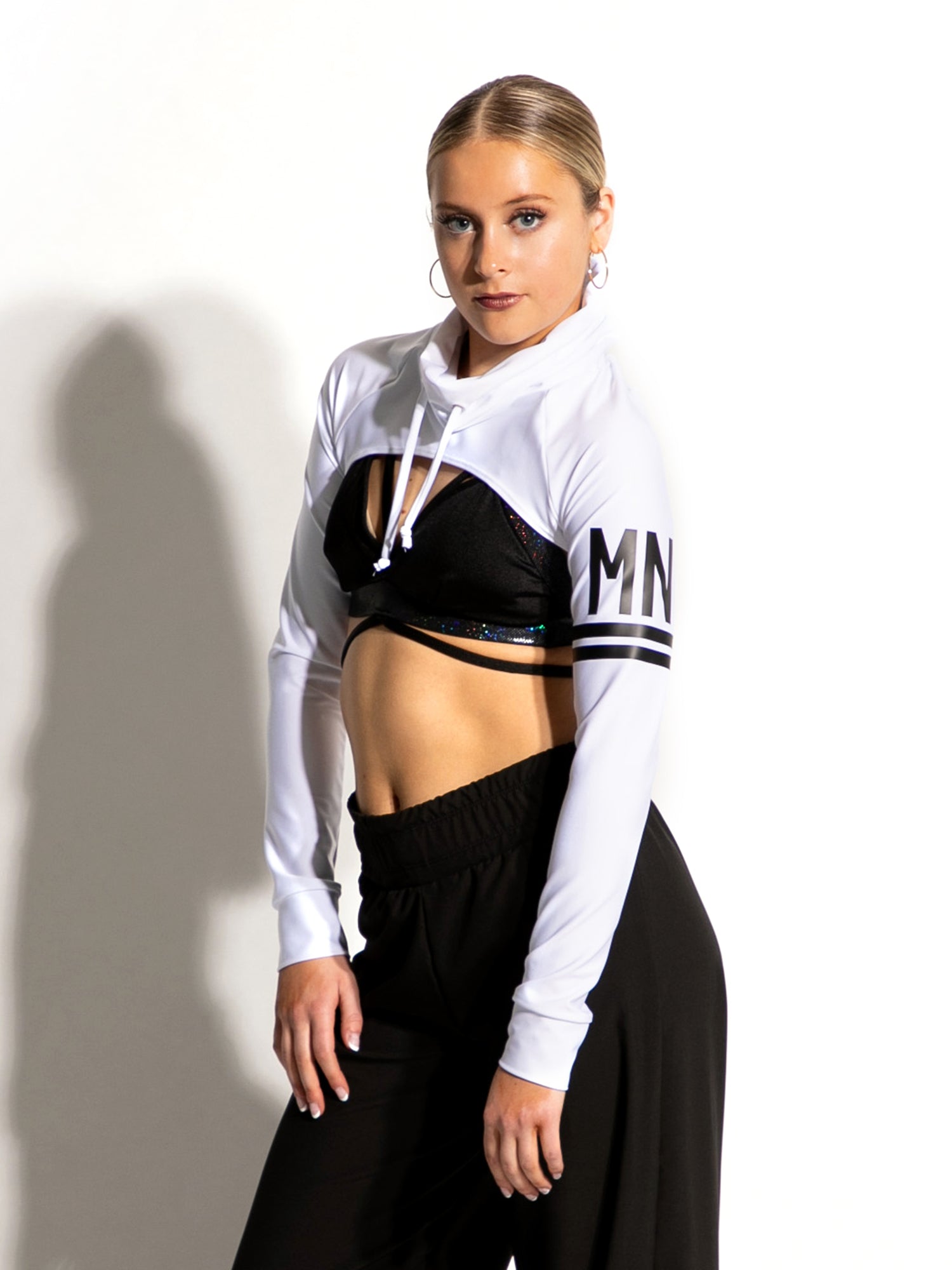 - Sporty Hip Hop inspired cowl-neck shrug with vinyl lettering
