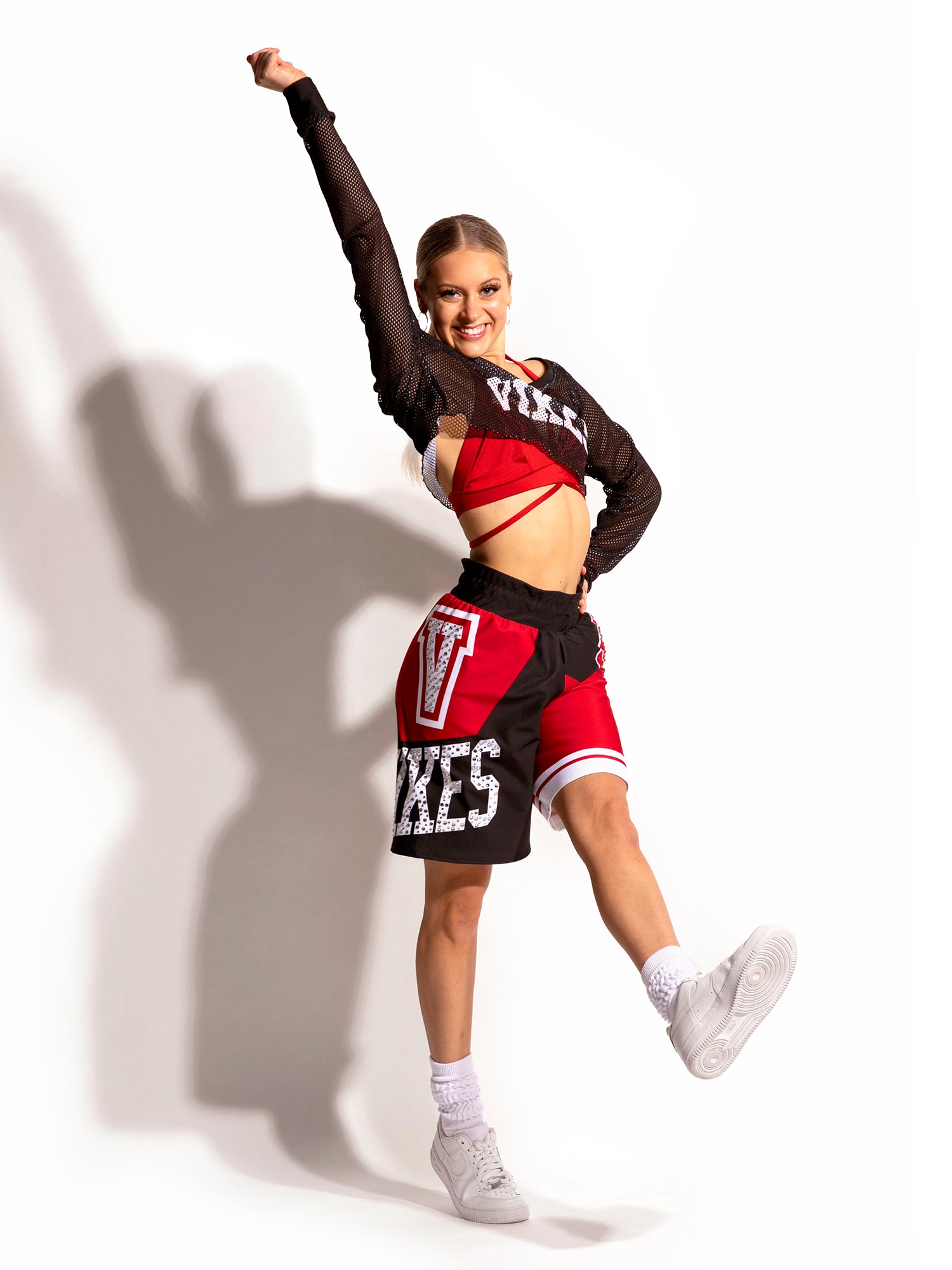 - Long sleeve pop mesh crop sweatshirt with lettering