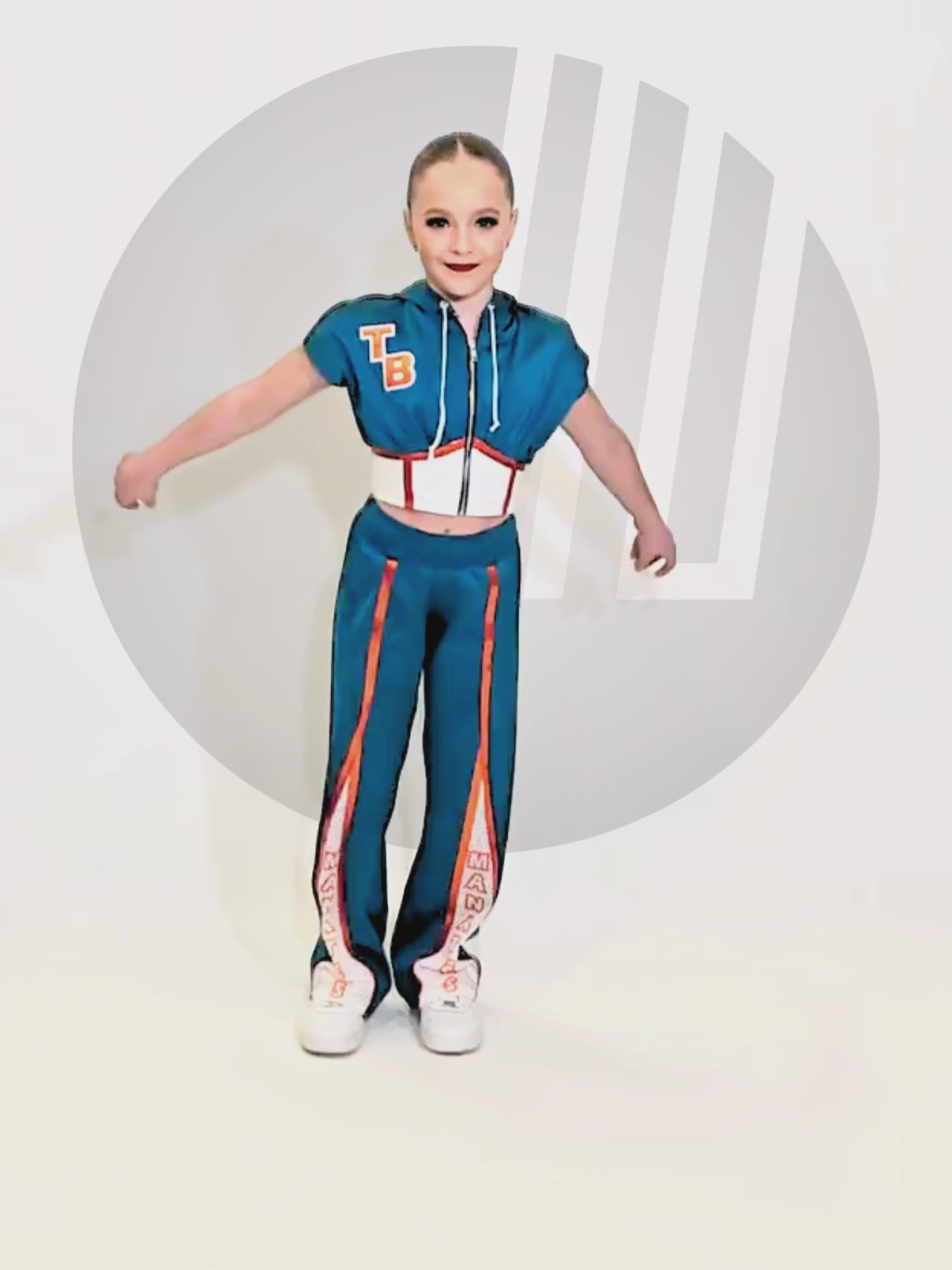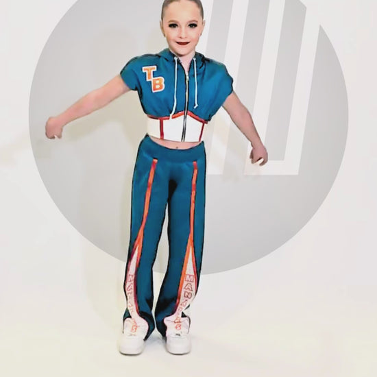 The Rhi Corset Jacket by The Line Up is a bold hip hop dance performance jacket featuring a cropped silhouette with corset-inspired detailing. Gathered accents and liquid blocking create dimension and edge, making it a standout piece for hip hop routines, warmups, and team performances.