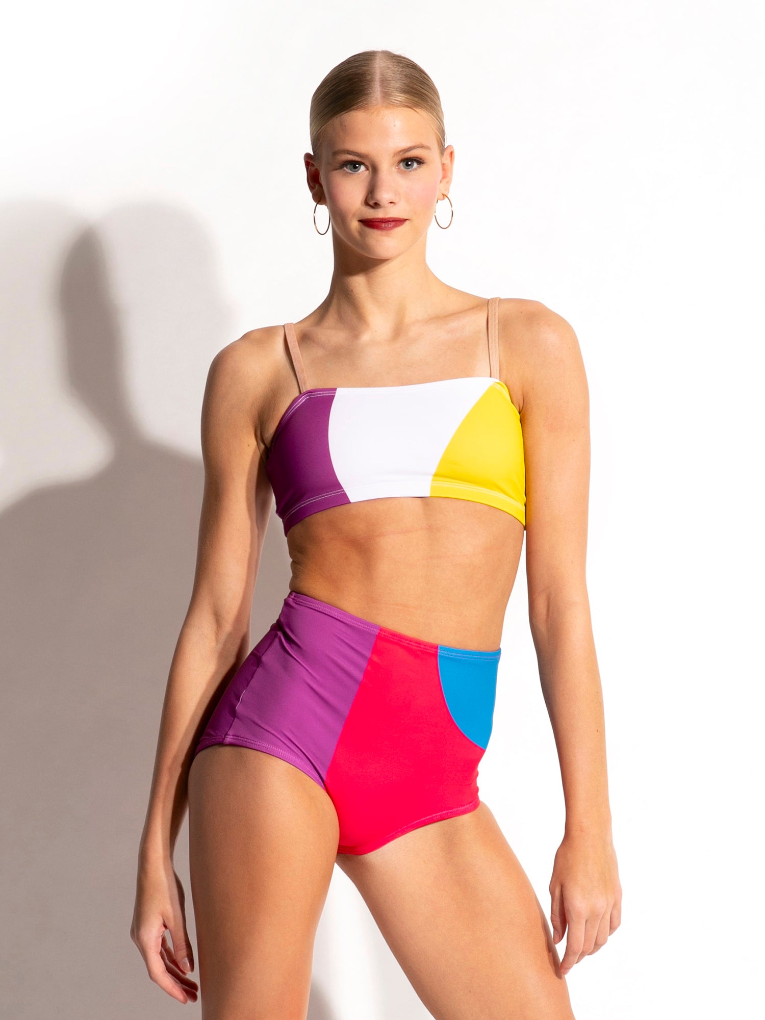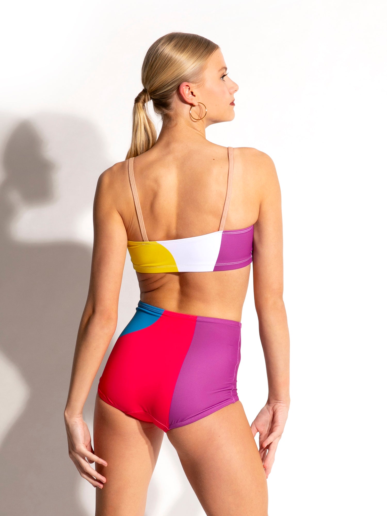 - Funky sublimated color blocked bandeau crop with mesh straps