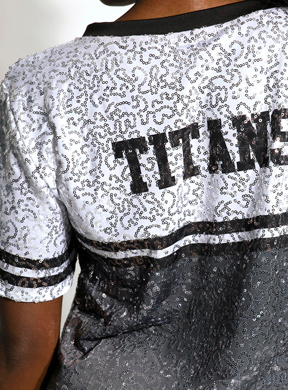 - Fully sublimated ombre jersey-style top in sparkle gaga fabric