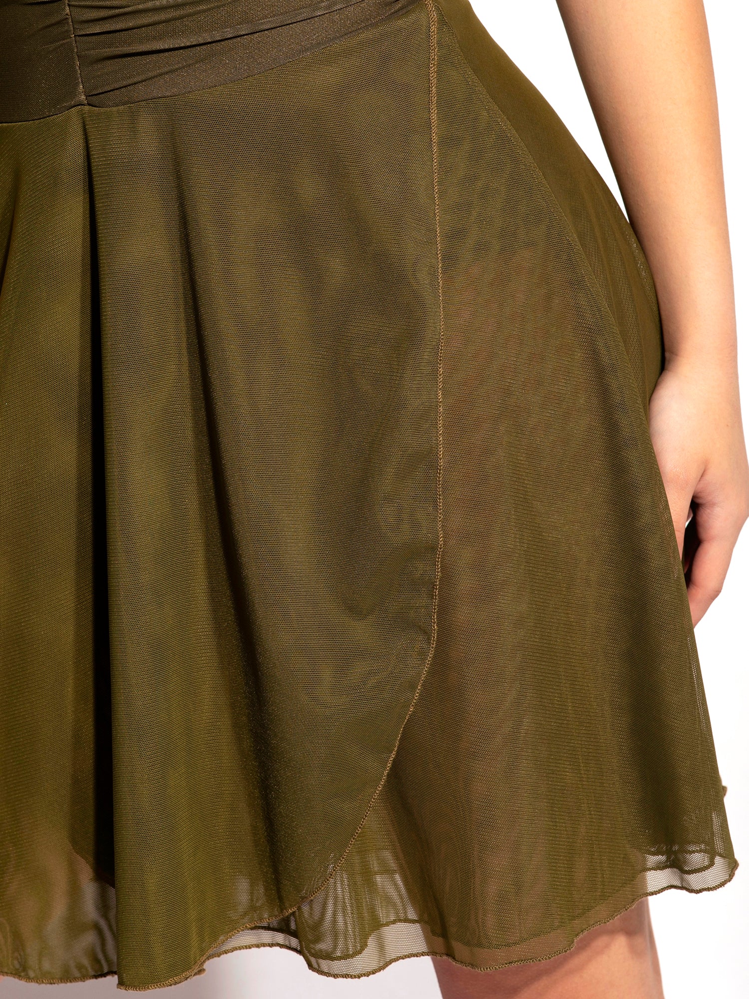 - Fairytale skate dress with gathered bodice and illusion high neck with a sublimated ombre